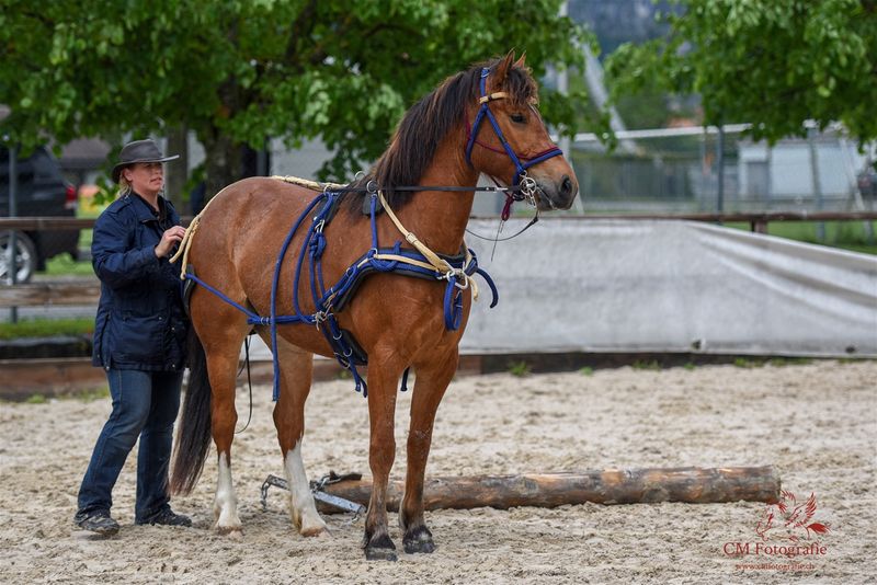 Mein Herzensprojekt, der 4-jährige Urfreiberger-Hengst Ceronimo, durfte ich Reiten, Fahren und am Holz mitausbilden. Am Feldtest am 5.6.2021 stellte ich den Hengst in allen 3 Disziplinen erfolgreich vor.